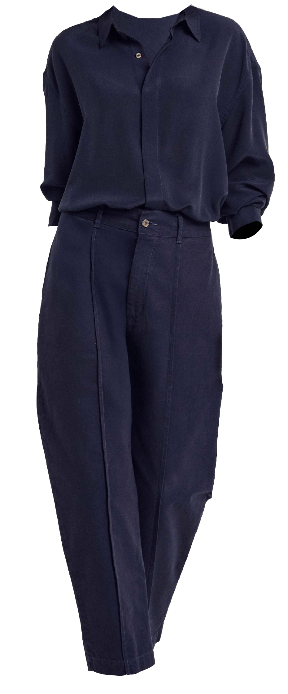 1 - Primeiro, uma roupa elegante e também confortável: escolhi essa camisa e essa calça marinho da Handred
