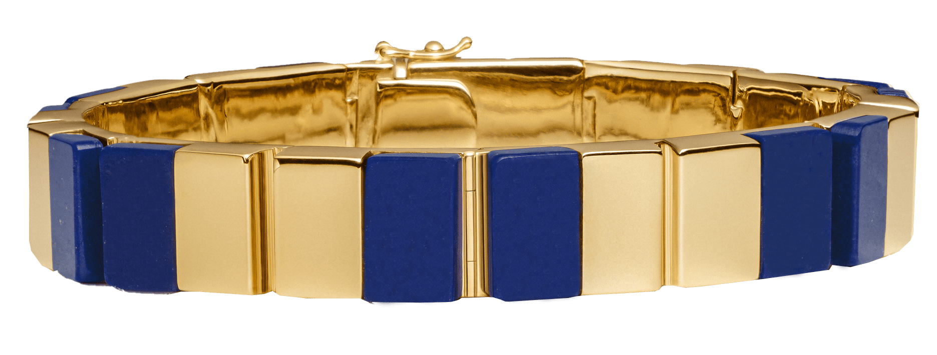 4 - Essa pulseira da Sauer, em ouro e lápis lazuli, traz a geometria bem-vinda